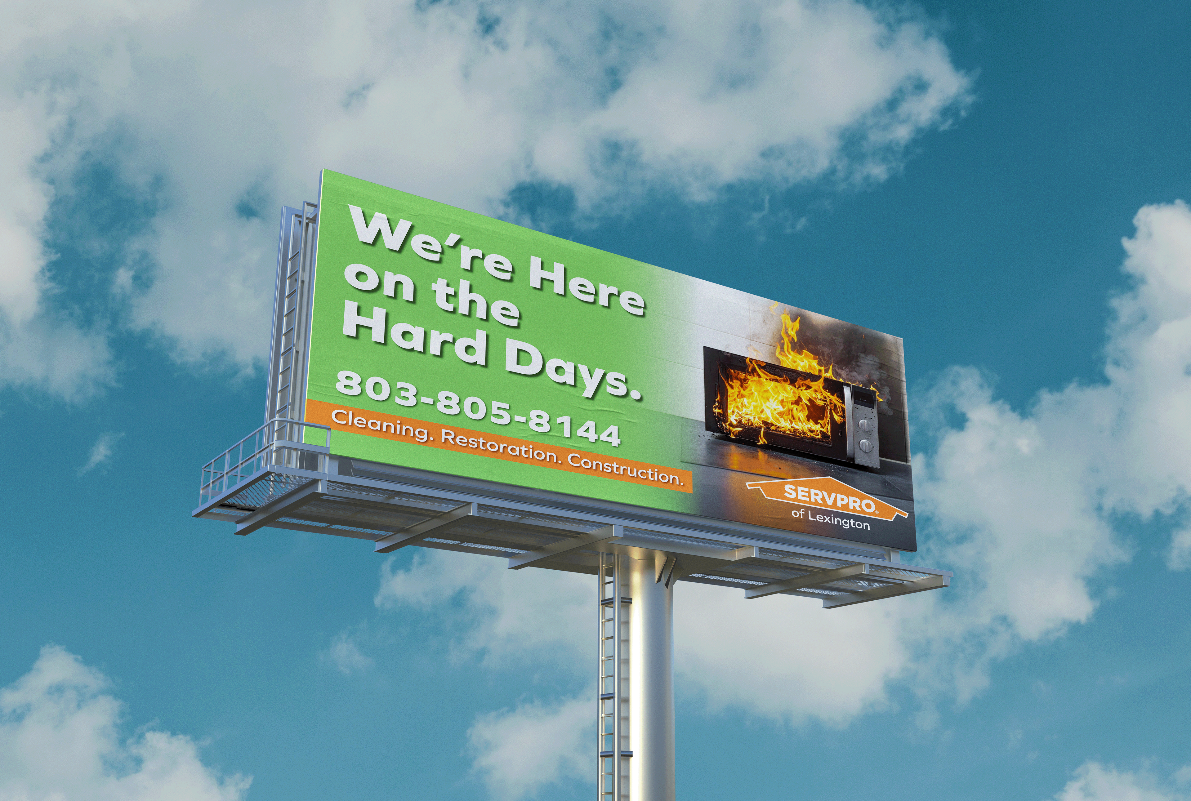 SERVPRO requested a sereies of billboard designs to be displayed in various area around Columbia, South Carolina. Real photo of billboard below.