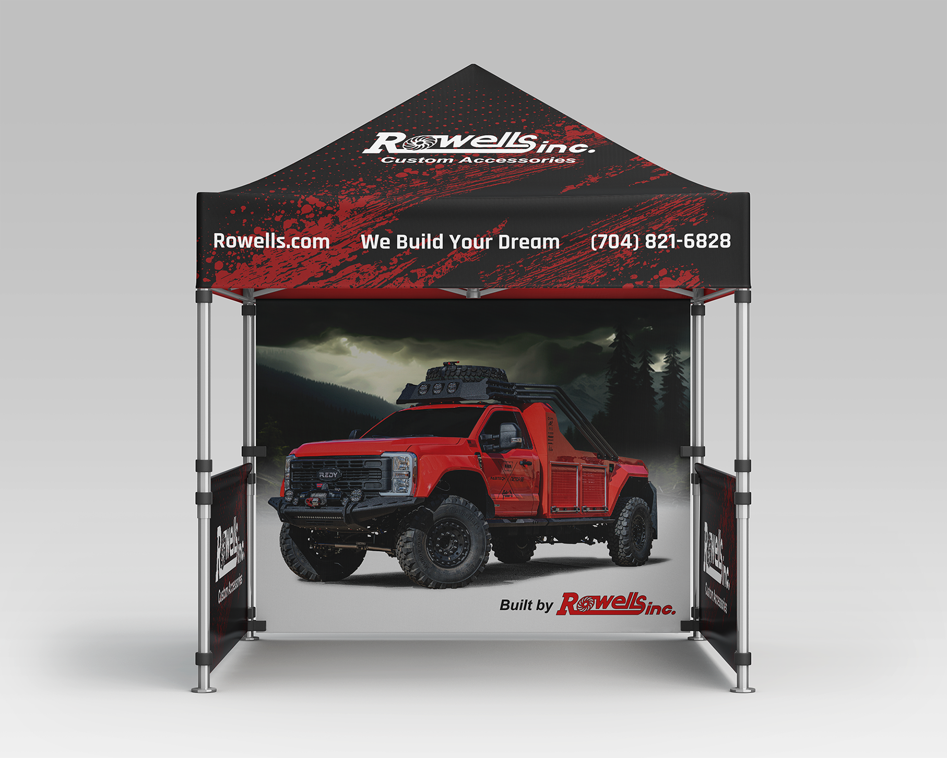 Rowell's requested a full booth design including tent, backdrop and welcome flags. Final design photo can be seen below.
