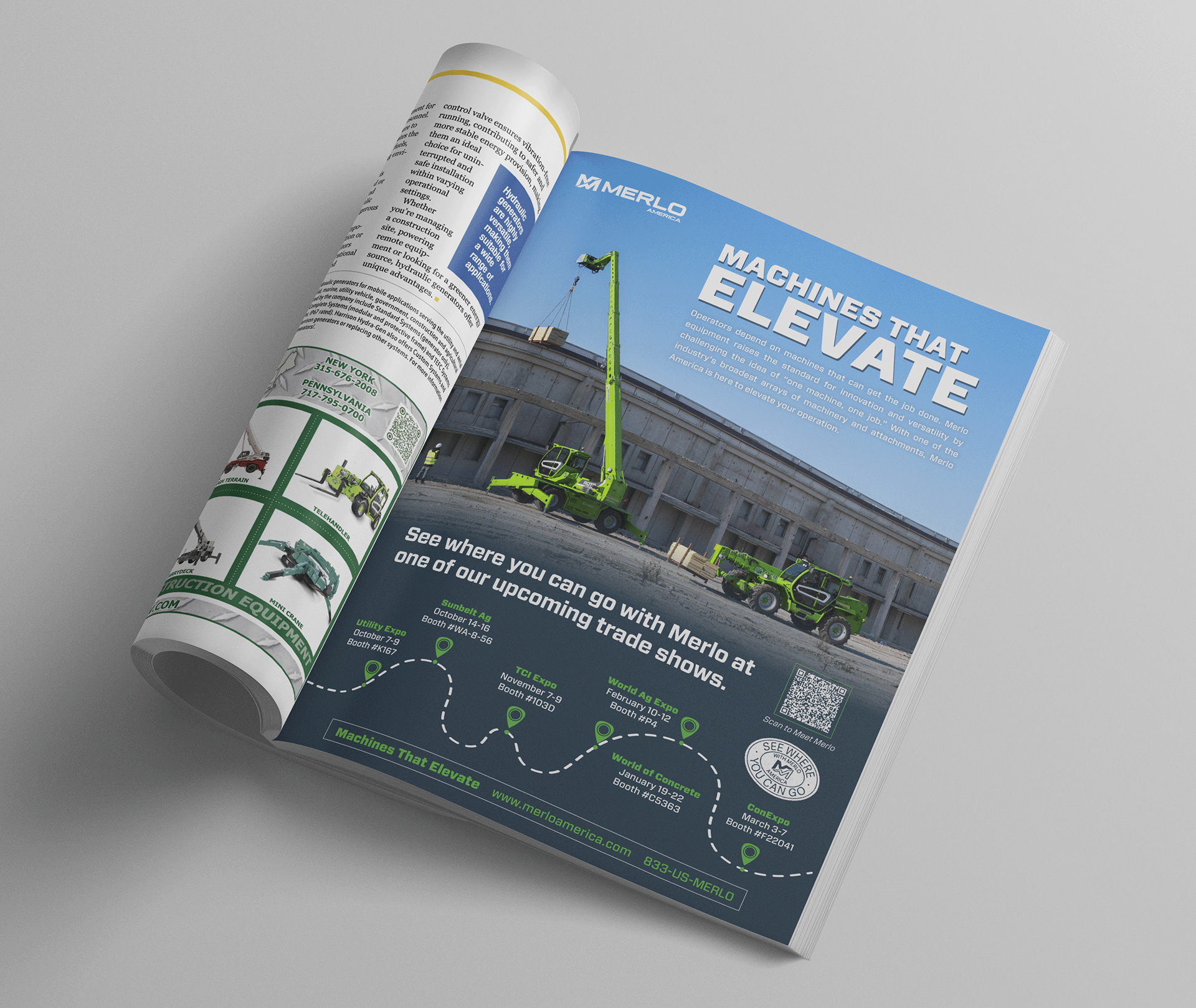 This print ad for Merlo America was published in the Fall issue of Lift & Access Magazine.