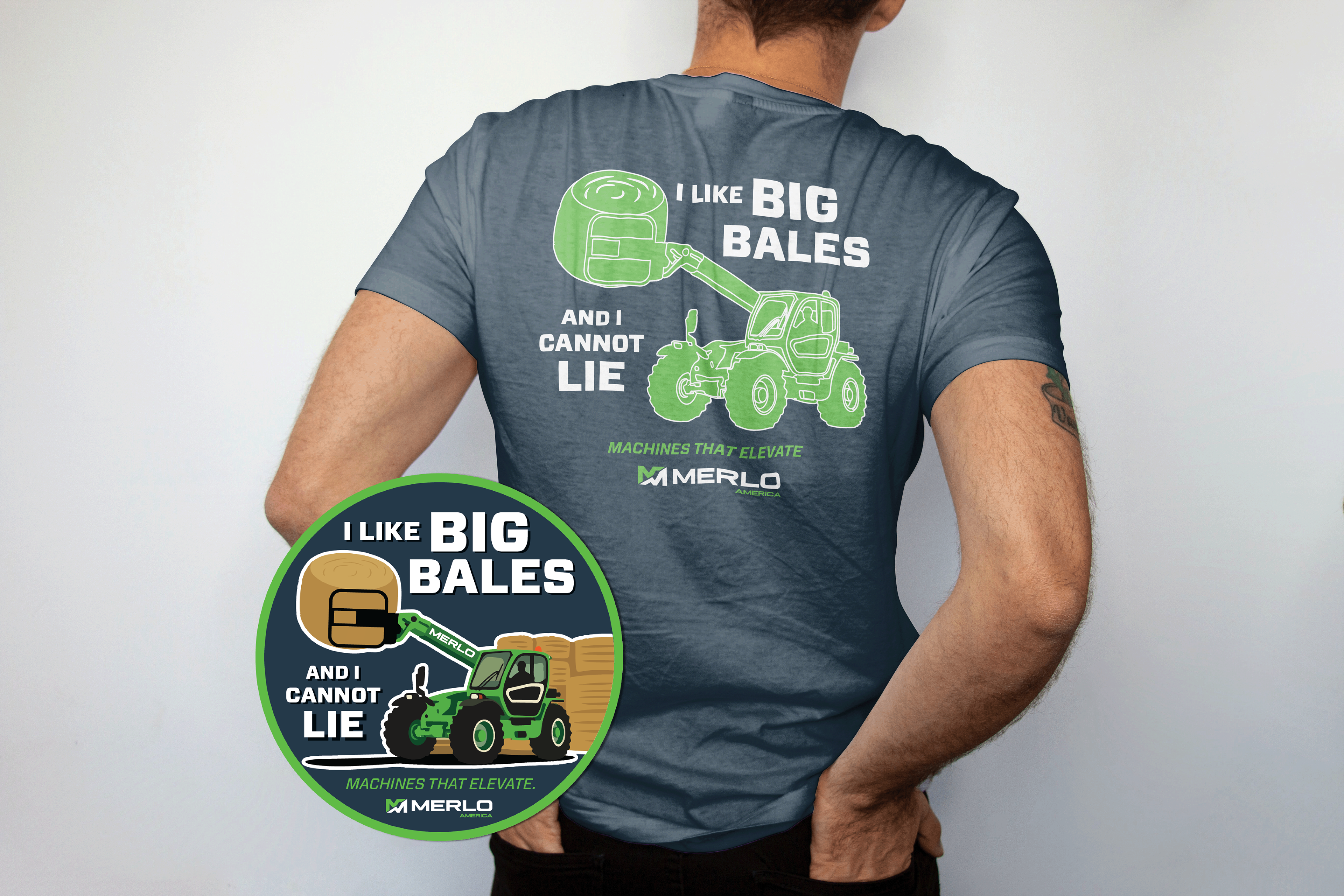 This shirt and sticker design was created for an agriculture tradeshow Merlo America was attending. The goal was to have a funny, yet still professional merch concept to give out at the event.