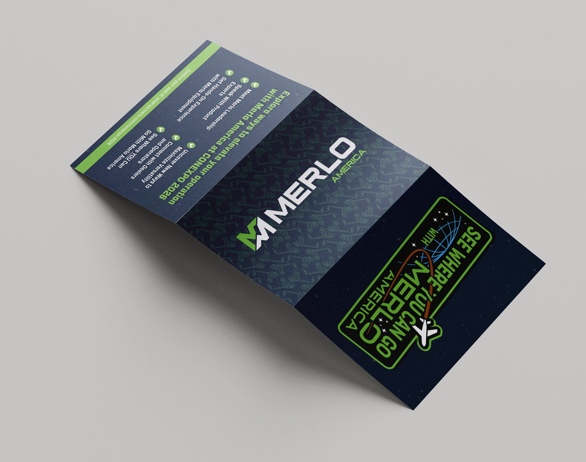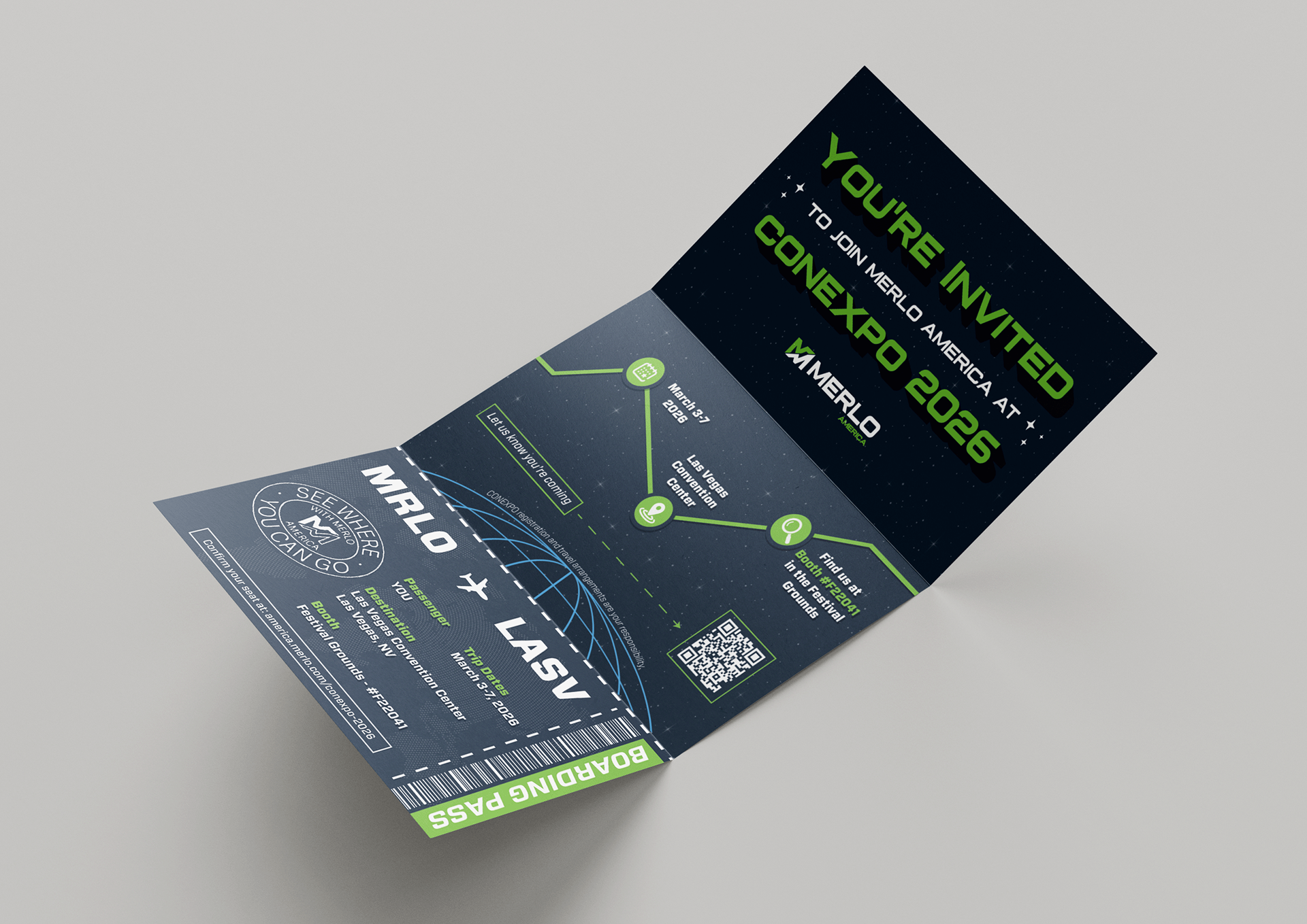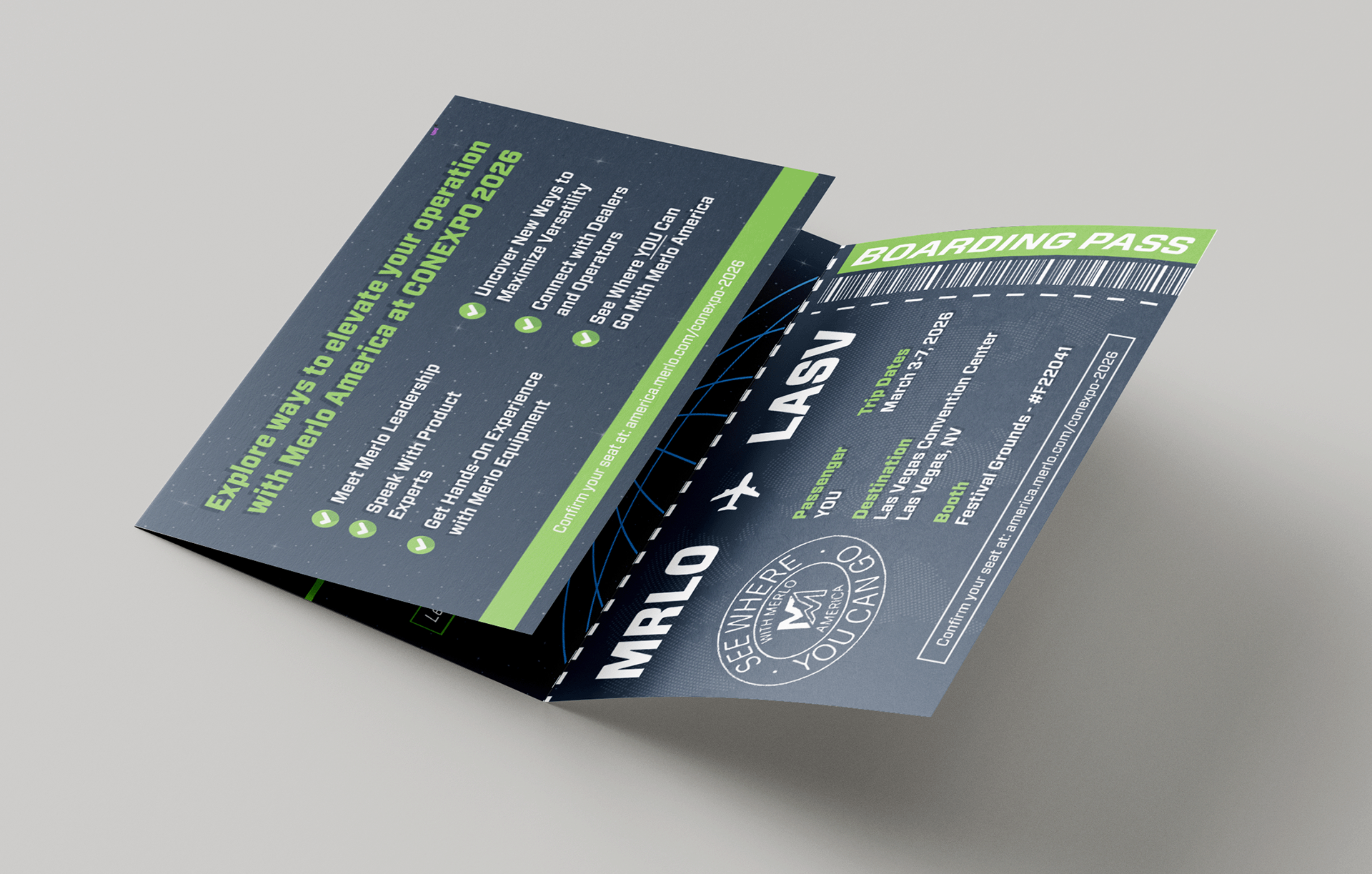This print invitation was designed for Merlo America and was sent to their dealer audience inviting them to ConExpo 2026. The theme for this event was space travel.